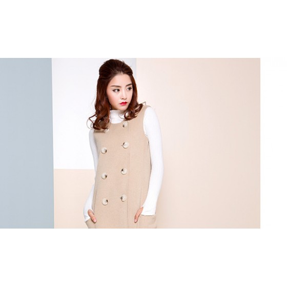 【特惠】 YCDW9-0020 时尚简约双面呢马甲连衣裙